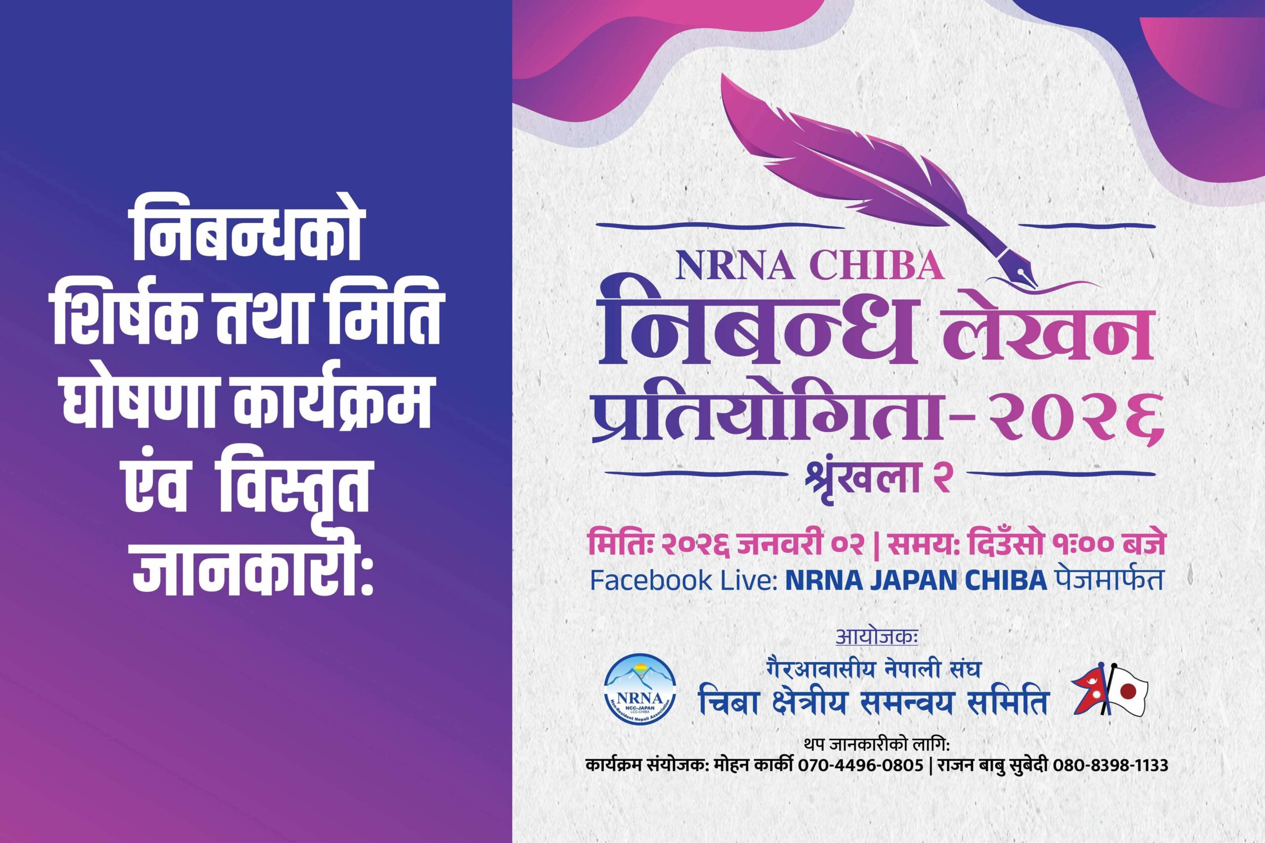 “NRNA Chiba निबन्ध लेखन प्रतियोगिता–२०२६ (शृङ्खला–२)”