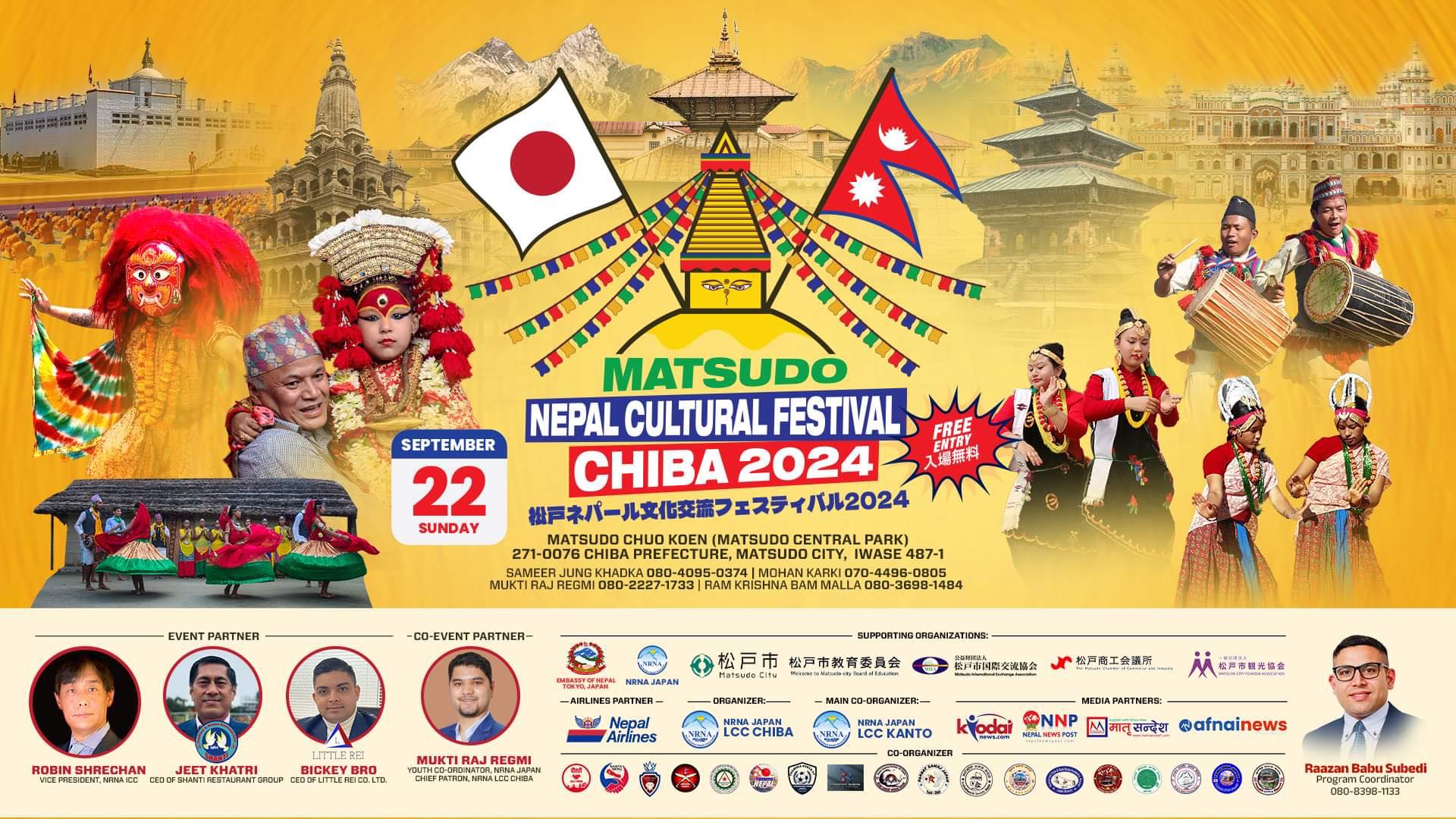2024年9月22日(日)松戸中央公園にて「松戸ネパールフェスティバル2024千葉」が開催されます。在日ネパール国大使館様や松戸市役所様などの多くの皆様からのご支援により、ネパールの文化やダンス、ネパール料理を楽しむことができるイベントだけではなく、日本文化や日本の踊りも楽しめる内容となっております。ぜひ、お越しいただき、お楽しみいただければ幸いです。